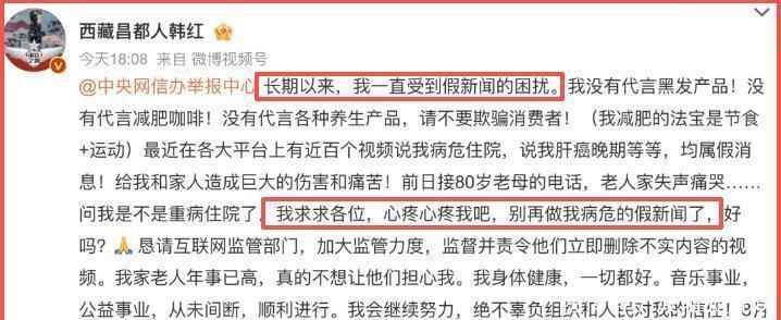 03 远离造神陷阱到了2024年8月,韩红手里拿着一堆公益单据,在微博发了一篇长长的文章,字里行间都满是难以抑制的愤怒情绪。我一直专注于音乐和公益,从未停歇,却被传闻病重住院,说我肝癌晚期;一心投入专业工作,却被人编造虚假消息,宣传我代言的虚假产品。为了证明自己,她公布了健康检查单、工作安排表,甚至还晒出了法律起诉的立案材料,打算和造谣的人死磕到底。假消息在短视频平台上的播放次数突破了亿元大关,“韩红病危”的话题也冲上了热搜榜。不过,她晒出的那些实锤证据,反倒被各种猎奇和猜测的留言淹没了,没人愿意认真看一眼。